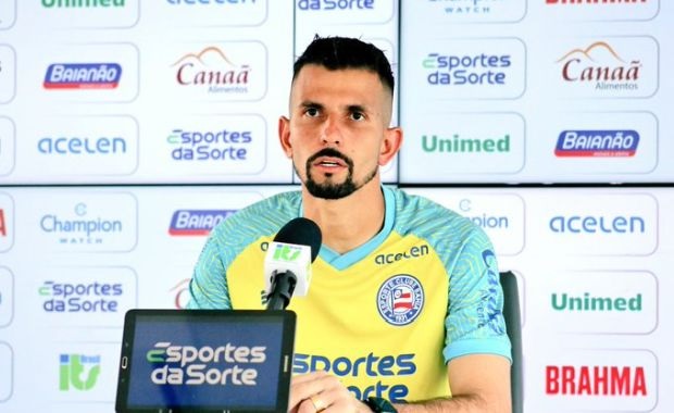 CompartilheCompartilhe 0 Redação Portal 2 de Julho contato@portal2dejulho.com.br Um dos melhores jogadores em campo no último jogo contra o Grêmio, o goleiro Marcos Felipe, foi o entrevistado durante a coletiva de imprensa desta sexta-feira (14). O atleta do Bahia respondeu diversas perguntas, porém uma das respostas chamou a atenção. Não pelo que ele disse, mas pelo que ele não falou. Questionado sobre o trabalho do técnico do Bahia, Renato Paiva, Marcos Felipe disse o seguinte: “Eu sou apenas um comandado do mister [Renato Paiva]. Não cabe a mim avaliar. Deixo isso para o encargo da diretoria. Minha parte é trabalhar para ajudar o Bahia da melhor forma possível”. Lembrando que antes dessa posição mais neutra de Marcos Felipe, os jogadores foram mais enfáticos na defesa do técnico Renato Paiva, um deles foi o jovem lateral-esquerdo Ryan, que teceu diversos elogios para o treinador português. Paiva não é uma unanimidade da torcida por causa dos resultados apresentados, porém o grupo City, que gere o Bahia atualmente, não dá indícios de que vai haver troca na comissão técnica nos próximos tempos. (Foto: Divulgação E.C. Bahia)