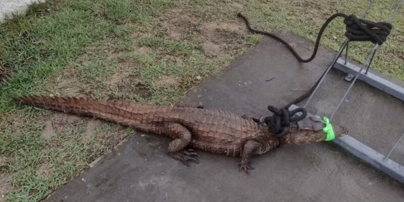 CompartilheCompartilhe 0 Um jacaré foi resgatado dentro de um condomínio, nesta segunda-feira (08), no bairro de Areia Branca, em Lauro de Freitas, na região metropolitana de Salvador. Segundo os moradores do local, ninguém ficou ferido. Ao G1, testemunhas informaram que o animal foi encontrado em uma das áreas comuns do condomínio, que é formado por diversos prédios. O caso ocorreu no Condomínio Jardim de Alah. O jacaré foi imobilizado e amarrado pelos moradores para evitar uma reação do animal. A Companhia de Proteção Ambiental (Coppa), foi acionada para o resgate do animal.