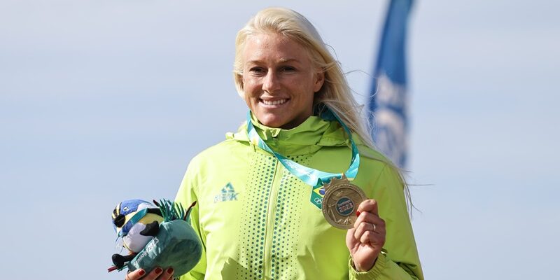 CompartilheCompartilhe 0 Agência Brasil O Brasil teve um dia de conquistas na praia de Punta de Lobos, em Pichilemu (Chile), onde foram realizadas as finais do surfe dos Jogos Pan-Americanos de 2023. O destaque foi o ouro de Tatiana Weston-Webb no shortboard, alcançado após triunfo sobre a canadense Sanoa Dempfle-Olin. “Ano que vem são as Olimpíadas e é uma esquerda [onda] grande igual a essa. Então foram ótimos treinos para o próximo ano, nas Olimpíadas. E é uma honra sempre estar ao lado do meu time, representando o Brasil, ao lado deles para mais conquistas […]. Esse ouro representa tudo”, declarou a brasileira, que já tem vaga garantida na próxima edição dos Jogos Olímpicos, que serão disputados em Paris (França) em 2024. Também no mar chileno, mas no stand up paddle (SUP), o Brasil garantiu medalhas, duas pratas. Elas vieram com Aline Adisaka entre as mulheres, após derrota para a colombiana Isabella Gomez na decisão, e com Luiz Diniz no masculino, que foi superado pelo norte-americano Zane Schweitzer na decisão. “Estou muito agradecida a Deus pela oportunidade de estar aqui representando meu país. Hoje o mar estava intenso, com condições muito difíceis, e estou muito feliz de ter chegado a esta grande final, de ter feito boas disputas. Agradeço a todos que estiveram ao meu lado para que chegasse até aqui. Não chegaria aqui sozinha, mas principalmente a Deus. Pois acredito que tudo tem um propósito. Se cheguei até aqui é para deixar uma mensagem, para não desistir dos nossos sonhos”, afirmou Aline Adisaka. Outra prata do Time Brasil veio com Chloe Calmon no longboard feminino. A brasileira perdeu a disputa final para a peruana Maria Fernanda Reyes. No masculino o Brasil também ficou com medalha, mas de bronze, com Carlos Bahia. (Foto: Divulgação COB)