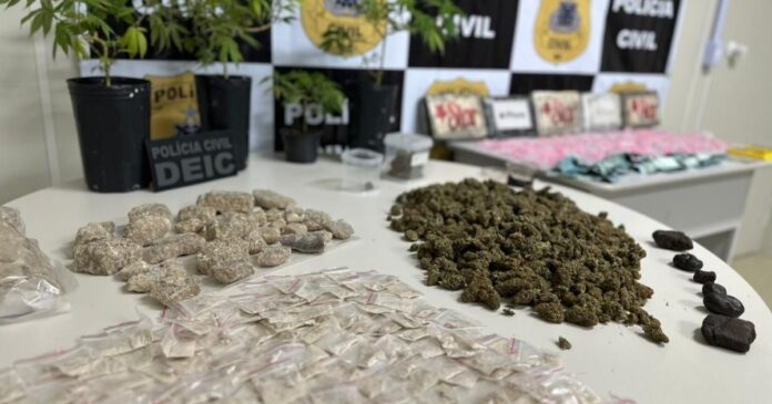 CompartilheCompartilhe 0 Um homem foi preso com grande quantidade de drogas que seria vendida durante o Carnaval em Salvador por policiais do Departamento Especializado de Investigações Criminais (DEIC) prenderam nesta terça-feira (5), De acordo com a Polícia Civil, o suspeito tem mandado de prisão em aberto por tráfico de armas. Ele é investigado pelo transporte de mais de 60 fuzis, na cidade de Palhoça, em Santa Catarina (SC), no ano passado. Durante as investigações, os policiais do DEIC descobriram que o homem tinha residência fixa na Bahia, onde já praticava o crime de tráfico de drogas. Na abordagem, o suspeito apresentou aos policiais um documento falso, em nome de outra pessoa. Entre maconha e drogas sintéticas, a apreensão representa uma descapitalização de aproximadamente R$ 1 milhão de reais para o crime organizado. Foram apreendidos cinco quilos de cocaína, dezenas de comprimidos de ecstasy, porções de droga sintética MDMA, porções de maconha e haxixe, uma carteira de identidade falsa, duas máquinas de cartões de crédito, quatro pés de maconha e a quantia de R$ 2.700 reais em dinheiro. O homem fez exame de corpo e delito e segue à disposição da justiça. Todo o material apreendido foi encaminhado para perícia do Departamento de Polícia Técnica (DPT).