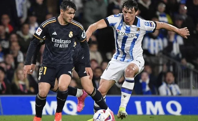 CompartilheCompartilhe 0 O Real Madrid conquistou nesta sexta-feira (26) uma importante vitória por 1 a 0, fora de casa, contra a Real Sociedad, pela 33ª rodada do Campeonato Espanhol, dando um passo significativo rumo ao título. O gol decisivo foi marcado pelo jovem turco Arda Güler, de 19 anos, aos 29 minutos do primeiro tempo, garantindo três pontos essenciais para a equipe merengue. O jogador, que pode jogar como meia-atacante ou ponta-direita, é considerado uma estrela em potencial. “Todo mundo sabe que o Arda é um jogador diferente”, declarou o meia croata Modric. “Ele será um jogador muito importante para o futuro”, disse o técnico Carlo Ancelotti. Com esse resultado, o Real abre uma vantagem de 14 pontos sobre o Barcelona, segundo colocado, que enfrentará o Valencia na segunda-feira (29). 🚨 @jfelixdiaz : "Luka Modric is now VERY LIKELY to STAY at Real Madrid next season." pic.twitter.com/gROJi7Ab1a — Madrid Zone (@theMadridZone) April 27, 2024 Ancelotti comemorou a vitória e destacou que faltam apenas quatro pontos para o caneco da La Liga parar na sala de troféus do Real Madrid. Mesmo com várias mudanças na equipe titular, visando o jogo contra o Bayern de Munique, pela Liga dos Campeões, na próxima terça-feira (30), a equipe da capital espanhola demonstrou sua superioridade em campo. O jogo contra a Real Sociedad marcou a volta de Militão como titular do Real após oito meses — foi a primeira vez que ele atuou por 90 minutos depois de uma grave lesão no joelho direito. Segundo o treinador merengue, há chances de que o zagueiro brasileiro e o goleiro Cortouis, que também se recupera de contusão no joelho, comecem a partida em Munique. Poupado para o jogo contra o Bayern, Vinicius Júnior entrou no segundo tempo em San Sebastián, mas não se destacou.