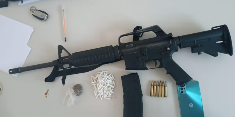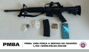 CompartilheCompartilhe 0 Uma operação da Polícia Militar contra uma facção na cidade de Maragogipe resultou na apreensão do segundo fuzil na Bahia, em menos de 24h. O armamento foi localizado com um traficante que morreu em confronto com as forças policiais, nesta terça-feira (9). De acordo com a Secretaria de Segurança Pública (SSP-BA), equipes da Rondesp Recôncavo, Cipe Litoral Norte, Graer, 27ª CIPM, CPME e CPR-R iniciaram varreduras no povoado de Capanema, após criminosos exibirem vídeos armados e praticando um homicídio. Um grupo foi avistado durante as incursões e reagiu atirando contra as guarnições. Houve confronto e um dos criminosos acabou ferido. Ele foi socorrido, mas não resistiu. Com ele foram apreendidos um fuzil calibre 5,56, carregador, munições e porção de maconha. JUAZEIRO Em Juazeiro, equipes da Força Integrada de Combate ao Crime Organizado (FICCO) e da PM interceptaram três detentos que fugiram do Complexo de Mata Escura. Com eles foram apreendidos um fuzil calibre 7,62, explosivos, uma submetralhadora, um revólver, carregadores e