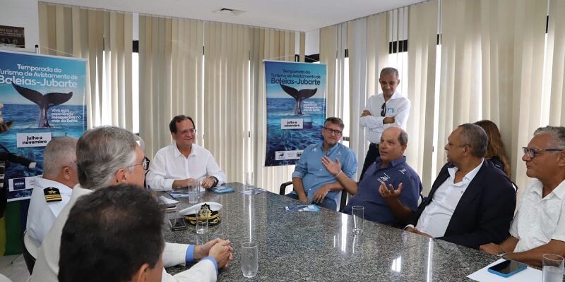 CompartilheCompartilhe 0 Redação Portal 2 de Julho contato@portal2dejulho.com.br O lançamento oficial da temporada 2023 do turismo de avistamento de baleias-jubarte (julho a novembro), no litoral da Bahia, foi realizado, nesta sexta-feira (28), na Secretaria de Turismo do Estado (Setur-BA), em Salvador. O evento teve a participação de representantes da Marinha, dos institutos Baleia Jubarte e Redemar Brasil, da Associação Brasileira das Agências de Viagens (Abav), do Conselho Baiano de Turismo (CBTur), da Associação Brasileira da Indústria de Hotéis (Abih) e de entidades do setor náutico. A Setur-BA apresentou um vídeo e distribuiu material informativo sobre a migração anual das baleias, da Antártica para o litoral baiano. Os animais procuram as águas calmas e mornas do mar da Bahia, onde fazem os rituais de acasalamento e reprodução. O avistamento dos mamíferos marinhos deve ser feito em passeio com barco apropriado, oferecido por operadoras de turismo especializadas, seguindo regras de segurança e proteção ambiental. O vídeo será usado em capacitações da secretaria para o segmento. “Esse é um segmento turístico que tem crescido no mundo. O mar da Bahia foi privilegiado como berçário das baleias-jubarte, que são genuinamente baianas, e o Governo do Estado não poderia deixar de incentivar o safári desses mamíferos marinhos, com sustentabilidade. O avistamento dos animais aumenta o tempo de permanência do visitante no destino, sinônimo de mais recursos injetados na economia”, pontuou o titular da Setur-BA, Maurício Bacelar. “Começamos o trabalho em Abrolhos, nos anos 1980, quando a estimativa era de 1,5 mil baleias. Em 2023, estamos com cerca de 30 mil animais no litoral brasileiro, a maioria no mar da Bahia. O avistamento é uma atividade que precisa ser mantida de forma profissional e sustentável”, explicou o presidente do Instituto Baleia Jubarte, Enrico Marcovaldi. “Atuamos na Baía de Todos-os-Santos para transformar Salvador na capital da jubarte, estimulando a consciência ambiental. A observação de baleias tem potencial para ser o novo grande impulso no turismo soteropolitano, por meio desse esforço conjunto da Setur-BA e parceiros”, completou o presidente do Redemar Brasil, William Freitas. (Foto: Divulgação Setur)