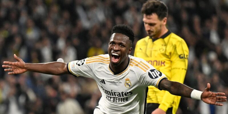 CompartilheCompartilhe 0 O gol marcado por Vinícius Júnior neste sábado (1), que confirmou a vitória do Real Madrid sobre o Borussia Dortmund, tornou o jogador o primeiro brasileiro a marcar duas vezes em final de Champions League. A primeira vez que o brasileiro tinha marcado foi em 2022, quando o time de Madri venceu o Liverpool por 1 a 0. O jogador também conquistou pela segunda vez a final da Champions, com apenas 23 anos, e é cotado como um dos favoritos para ser indicado ao Bola de Outro. O gol feito contra o Borussia fez Vini Jr. ultrapassar Messi, como o mais novo a conseguir o feito. Em 2011 o argentino fez o seu segundo e último gol em uma decisão do torneio, contudo ele estava mais próximo dos 24 anos. O brasileiro é apenas o quinto jogador diferente do Real Madrid a atingir tal marca, ao lado de Cristiano Ronaldo, Bale, Raúl González e Sergio Ramos. Durante toda a fase mata-mata da competição, Vinicius Junior esteve diretamente envolvido em 22 gols, sendo 11 gols e 11 assistências. A vitória conquistada pelo time merengue, fiz ele se isolar ainda mais na lista de campeões da Champions. São 15 títulos conquistados. O segundo colocado tem apenas 7. O Real Madrid derrotou o Dortmund por 2 a 0 neste sábado com gols de Carvajal e Vini. Jr. Ambos só saíram no segundo tempo, depois de um jogo parcialmente dominado pelos alemães.